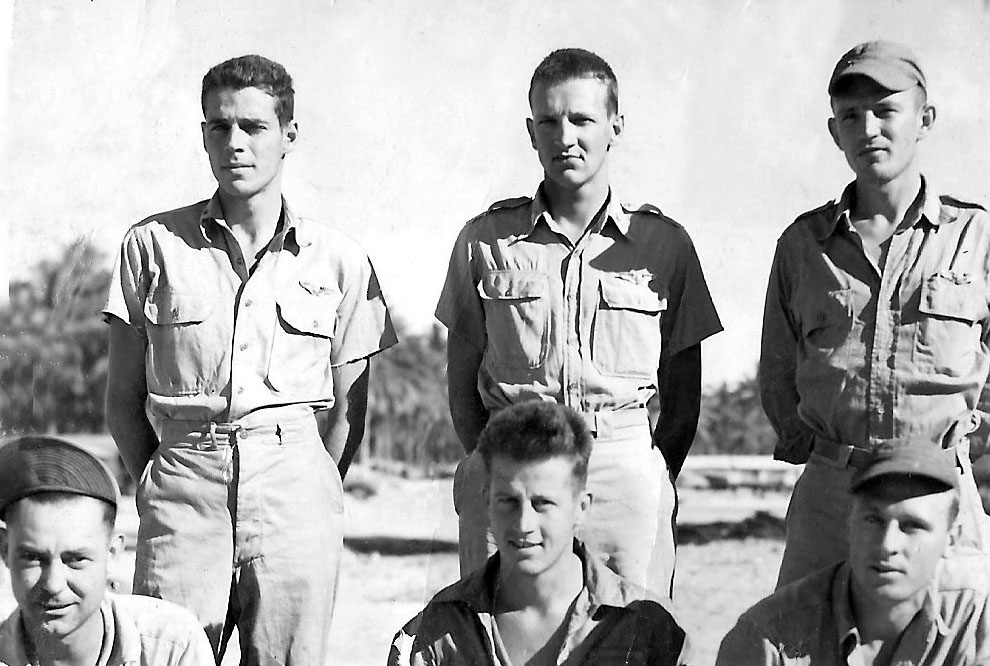 (Pilot) John Dickinson. Kneeling (L to R) (Engineer) T/Sgt Oral Lawson,