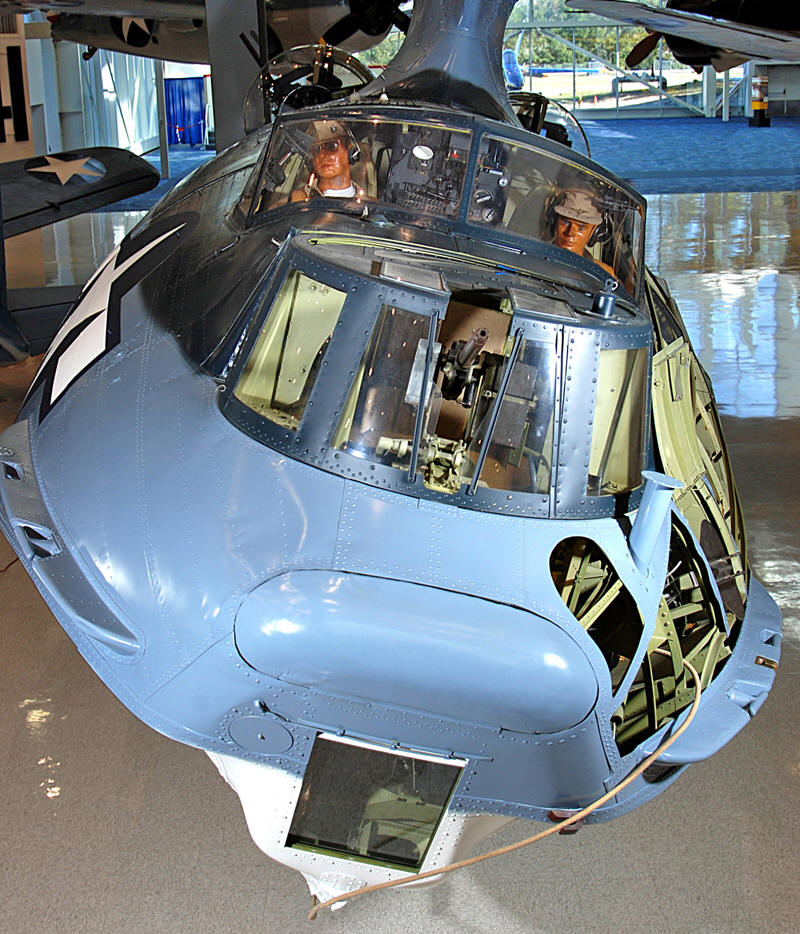 A good photo of the nose of the PBY Catalina and her standard nose turret. Visible is the Browning 30 caliber machine gun.
