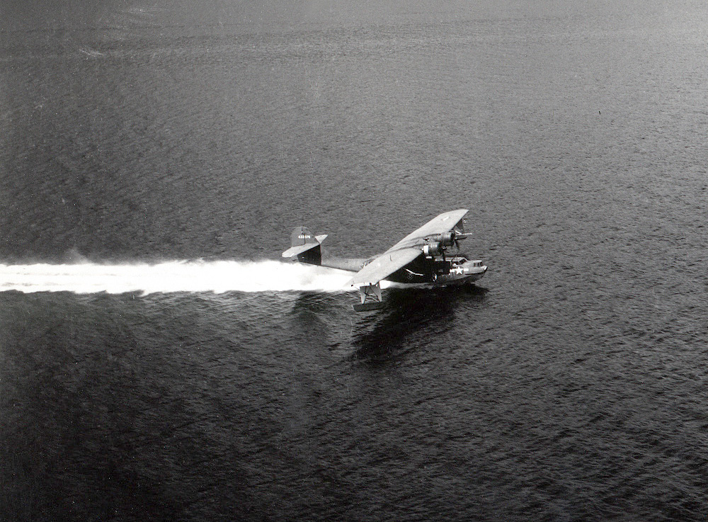 Up on the "step" Squadron Cat 44-33876 is on her takeoff run (Courtesy Mary Carol Wientjes) [Back] [Next]